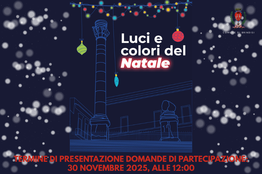 Il Comune di Brindisi, in vista del prossimo periodo natalizio, istituisce il contest "Luci e colori del Natale". L’iniziativa è volta a promuovere l'abbellimento e la valorizzazione della città mediante l'utilizzo di decorazioni, addobbi e luci a tema natalizio installati in spazi esterni.