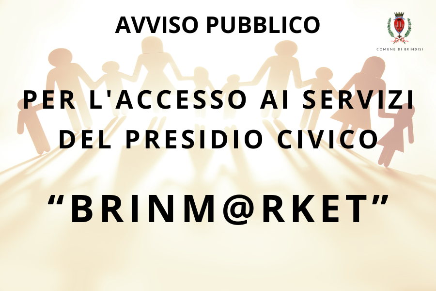 Il Comune di Brindisi, con Determinazione Dirigenziale n. 95 del 21 gennaio 2026, in esecuzione della DGC 190/2025 ha approvato l'avviso pubblico  per la presentazione delle domande di accesso da parte delle famiglie del territorio al Presidio Civico “BrinM@rket” finalizzato al sostegno alimentare e all’accompagnamento sociale - Coprogettazione sperimentale avviata tra l’Organizzazione di Volontariato Shalom Adonai individuata quale soggetto partner, il Comune di Brindisi ed il Consorzio ATS Br/1.