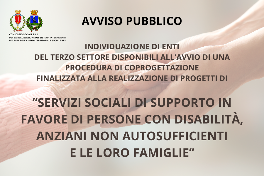 Avviso Pubblico per l’individuazione di enti del terzo settore disponibili all’avvio di una procedura di coprogettazione finalizzata alla realizzazione di progetti di “servizi sociali di supporto in favore di persone con disabilità, anziani non autosufficienti e le loro famiglie”