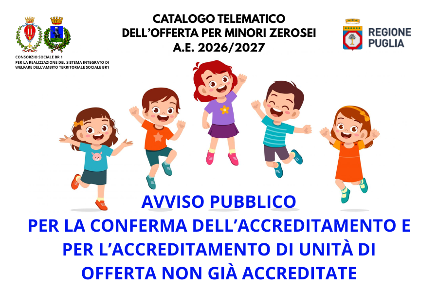 Il Dipartimento Politiche del Lavoro, Istruzione e Formazione della Regione Puglia con Atto Dirigenziale n. 235 del 26/03/2026 ha approvato l’Avviso pubblico per la conferma dell’accreditamento delle unità di offerta già accreditate e per l’accreditamento di unità di offerta non già accreditate nel Catalogo telematico per minori zerosei per l’anno educativo 2026/2027.