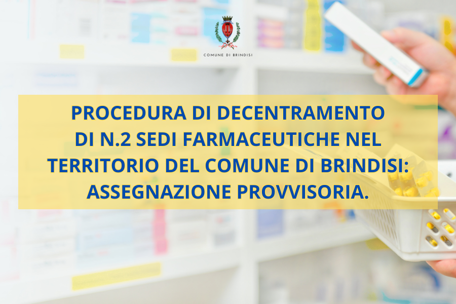 Procedura di decentramento di n.2 sedi farmaceutiche nel territorio del Comune di Brindisi: assegnazione provvisoria.
