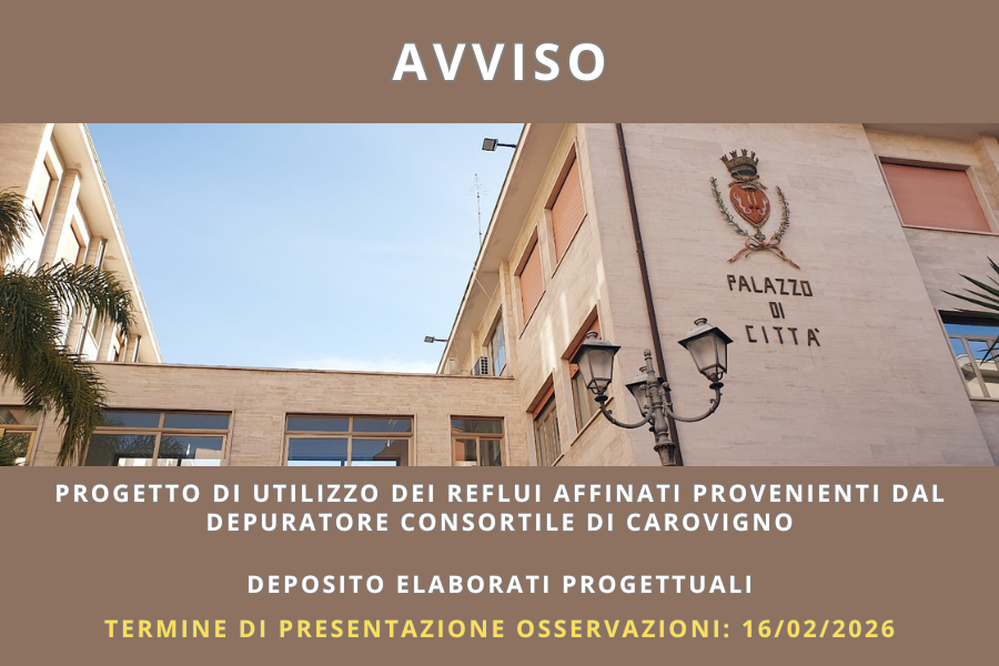 Il Consiglio Comunale, con deliberazione n. 112 del 29/12/2025, ha preso atto del progetto di utilizzo dei reflui affinati provenienti dal depuratore consortile di Carovigno, nel comparto agricolo della riserva naturale dello Stato di Torre Guaceto, dichiarando, contestualmente, la pubblica utilità.