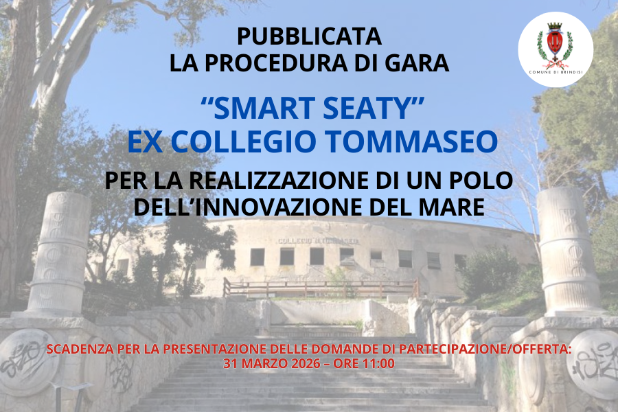 “SMART SEATY – Riqualificazione dell’ex Collegio Tommaseo per la realizzazione di un Polo dell’Innovazione del Mare (formazione, incubazione d’impresa, area eventi/congressi e alloggi/foresteria)” nel Comune di Brindisi.
