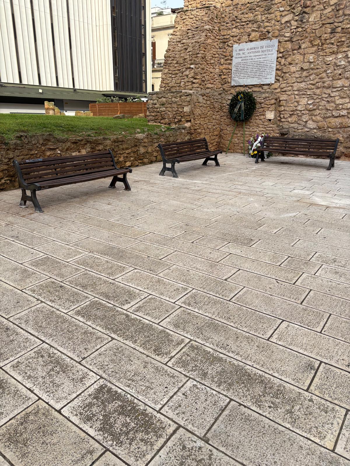 Nelle prime ore della mattinata di mercoledì 4 marzo 2026, le panchine in piazzetta Sottile-De Falco sono tornate al loro posto, dopo che lo spazio aperto nei pressi del Nuovo Teatro Verdi e del Palazzo Granafei – Nervegna era stato reso più capiente per consentire il miglior svolgimento possibile delle celebrazioni, svoltesi ieri, in onore del vicebrigadiere Alberto De Falco e del finanziere scelto Antonio Sottile, morti in servizio il 23 febbraio 2000.